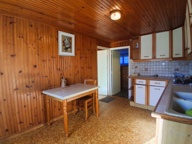 - En rez-de-chaussée : entrée, cuisine aménagée, séjour/salon avec cheminée ouverte, deux chambres avec placards, salle d'eau avec douche à l'italienne, WC,