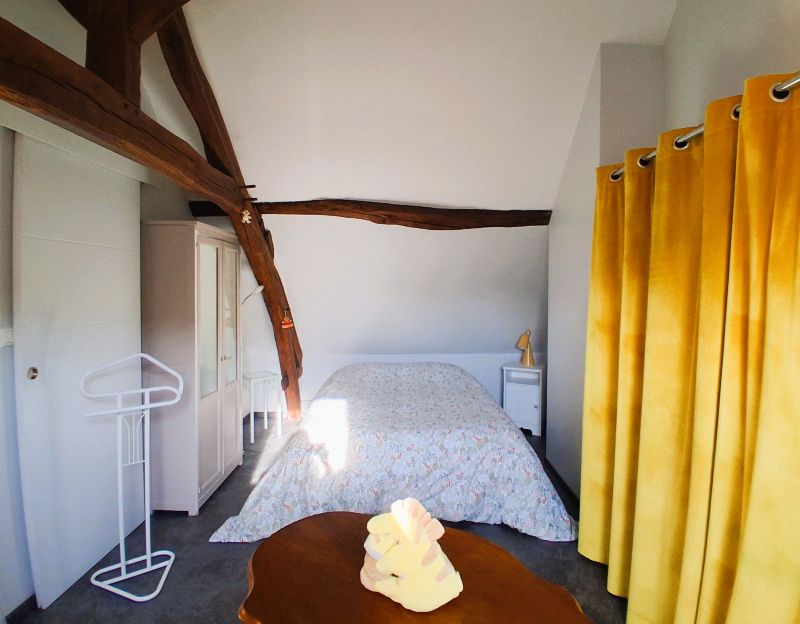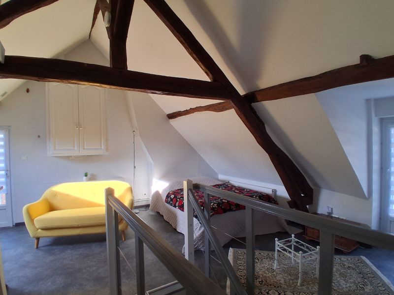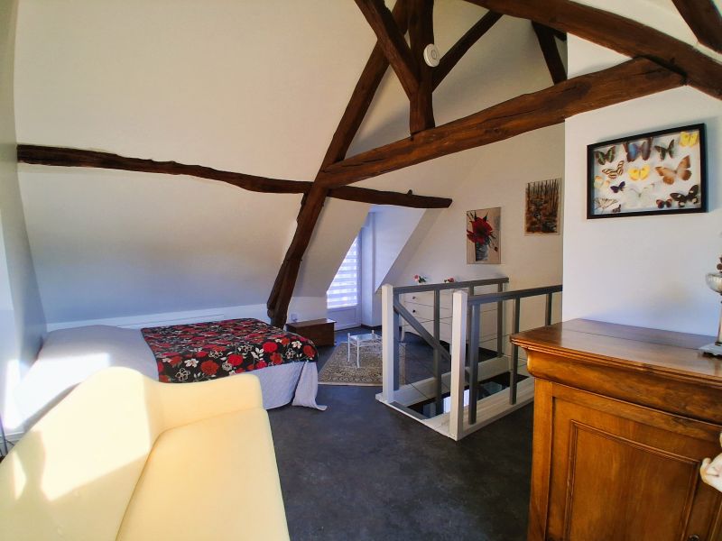 - A l'étage : grande chambre palière avec poutres apparentes, 2è chambre, salle d'eau/WC,